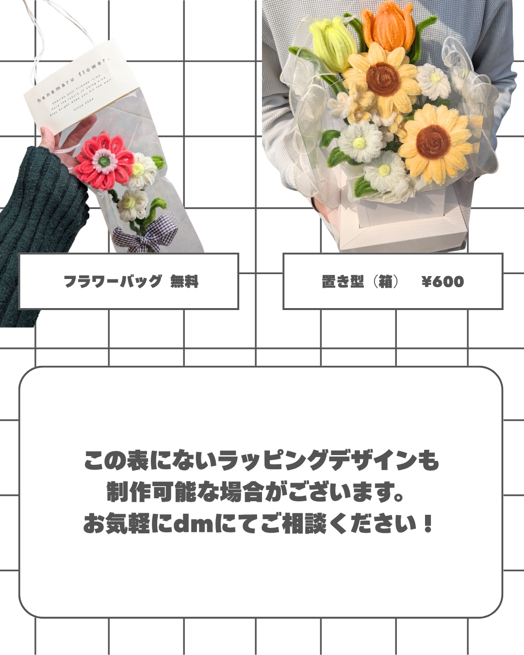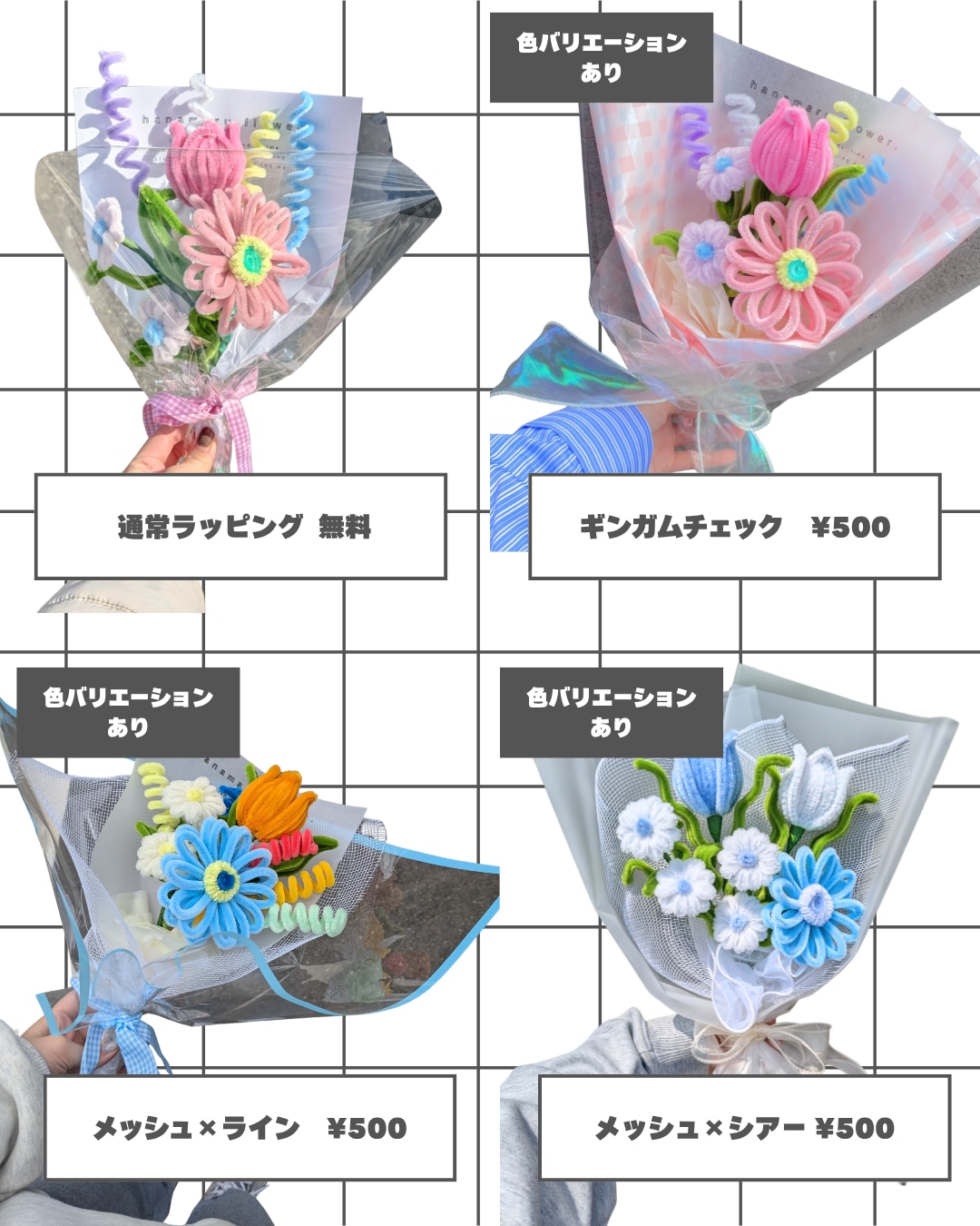 ⭐︎Instagramに掲載のあるラッピングデザインは全て対応できます。お色変更のご希望などもぜひご相談ください。
