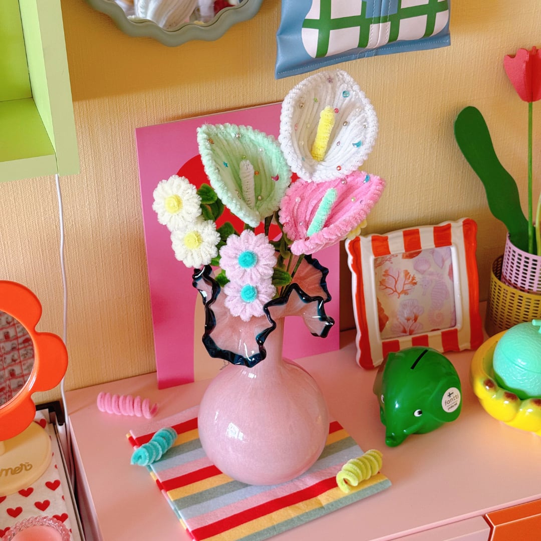 お花は海外から取り寄せたこだわりカラーのモールで1つ1つ丁寧に手作りした1点ものです。