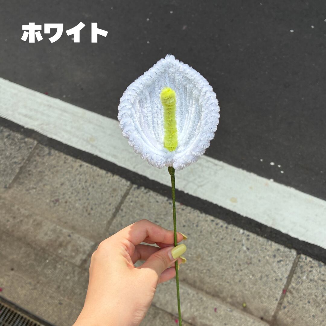 オプションで肉穂花序(お花の真ん中の細い部分)にリボンをつけることもできます。