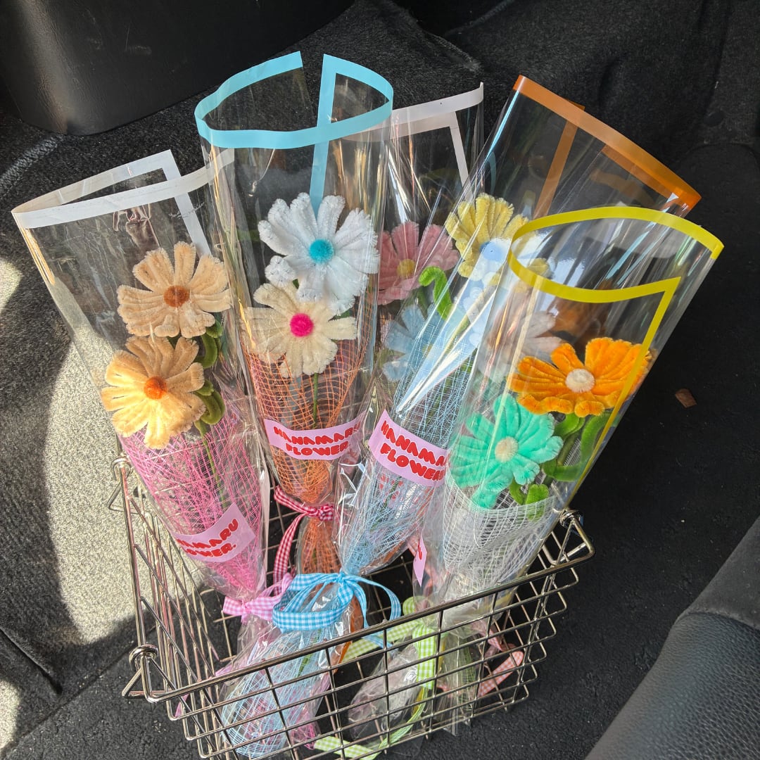 海外から取り寄せたこだわりカラーのモールで1つ1つ丁寧に手作りしています。