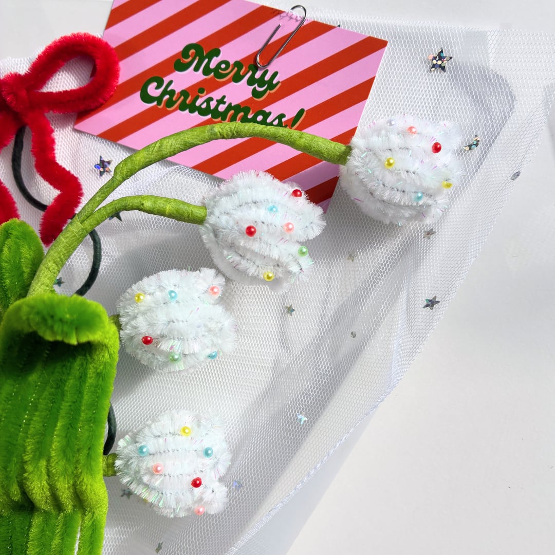 お花は海外から取り寄せたこだわりカラーのモールで1つ1つ丁寧に手作りした1点ものです。