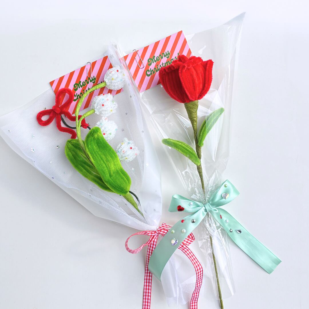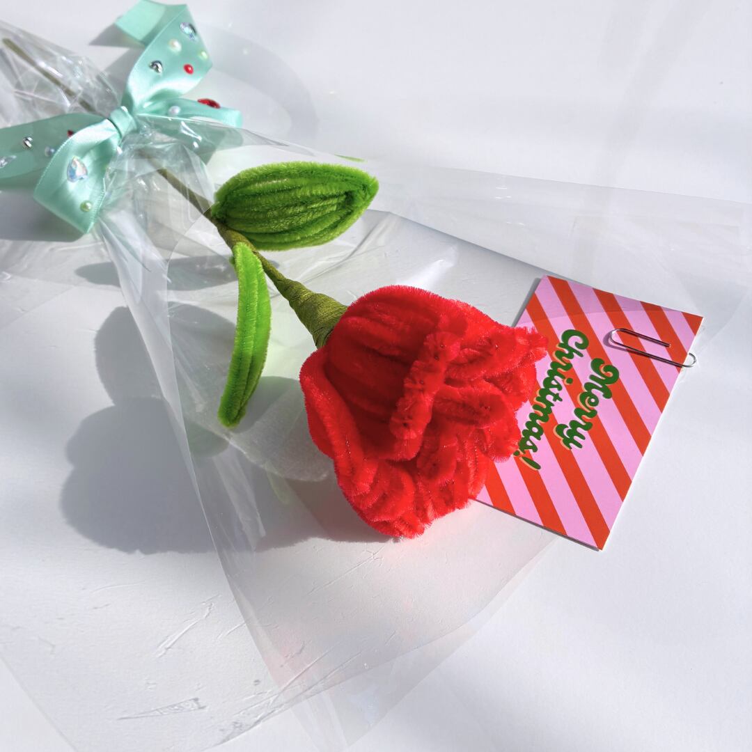 お花は海外から取り寄せたこだわりカラーのモールで1つ1つ丁寧に手作りした1点ものです。