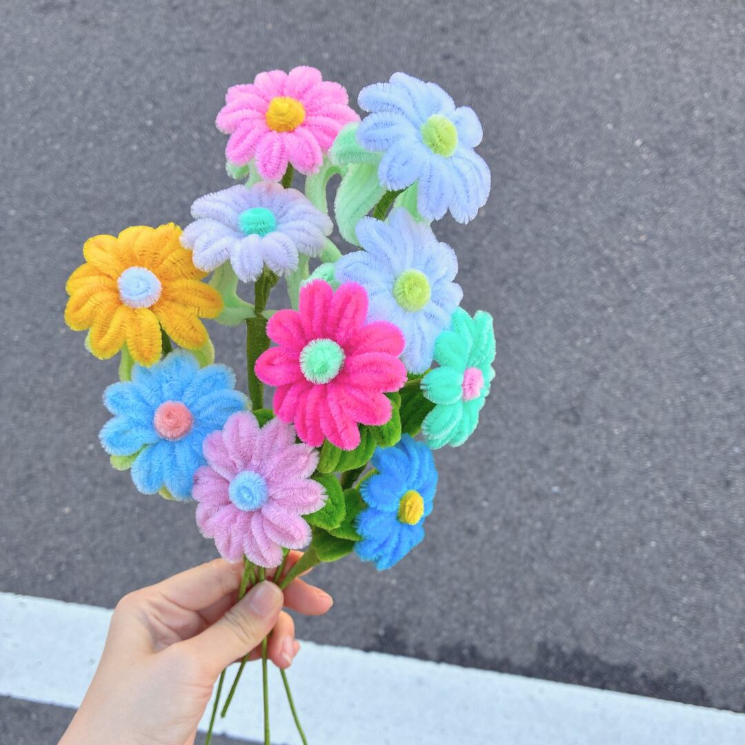 お花は海外から取り寄せたこだわりカラーのモールで1つ1つ丁寧に手作りした1点ものです。