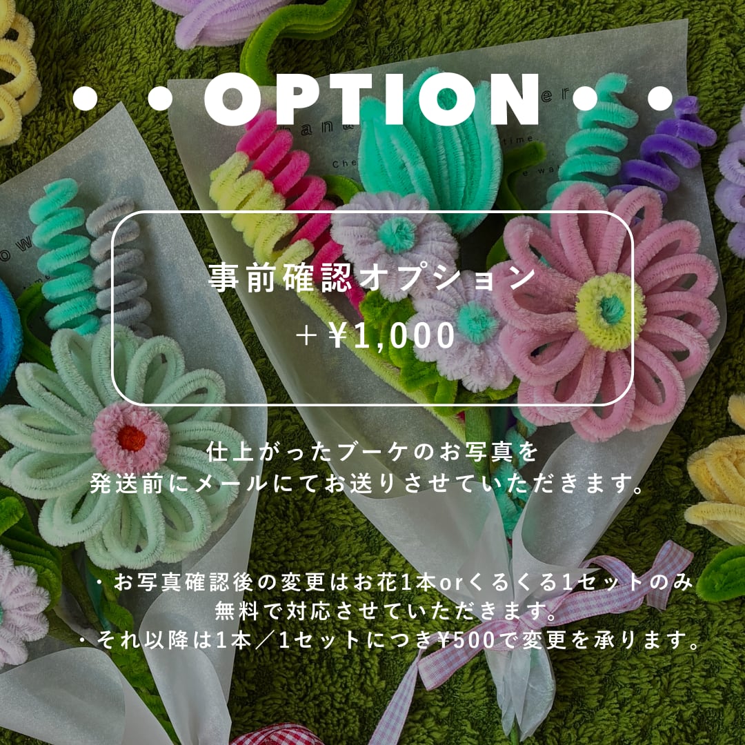 お写真確認後の変更は、お花1本(くるくる1セット)まで無料で対応させていただきます。