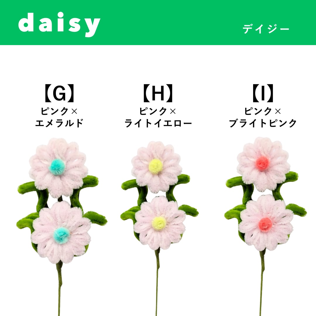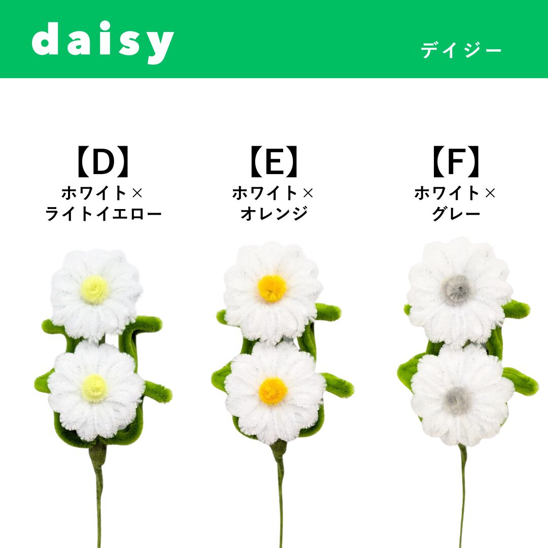 チューリップ16種類 × ガーベラ15種類 × デイジー16種類 × くるくる8種類からお好きなものをチョイス♪