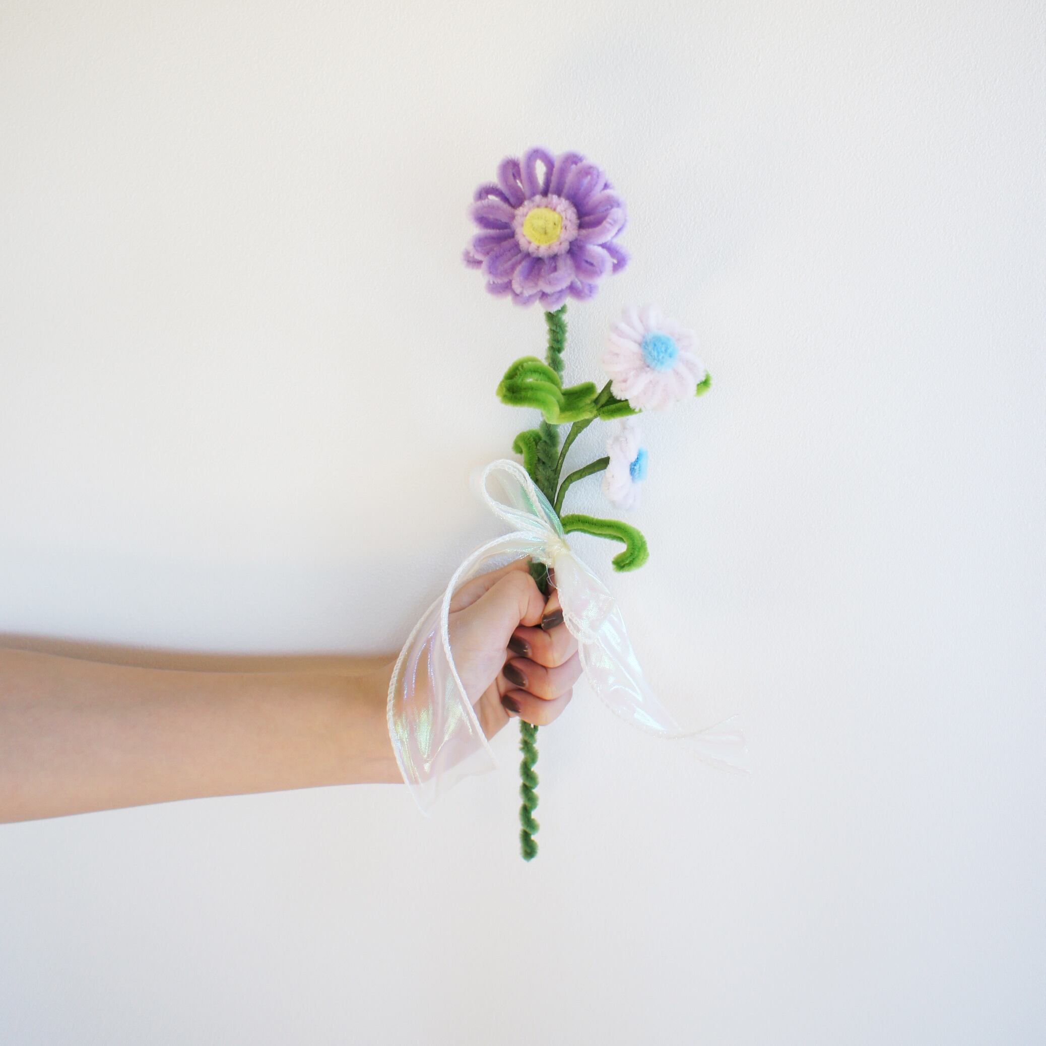 海外から取り寄せたこだわりカラーのモールで1つ1つ丁寧に手作りしています。