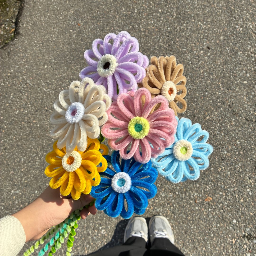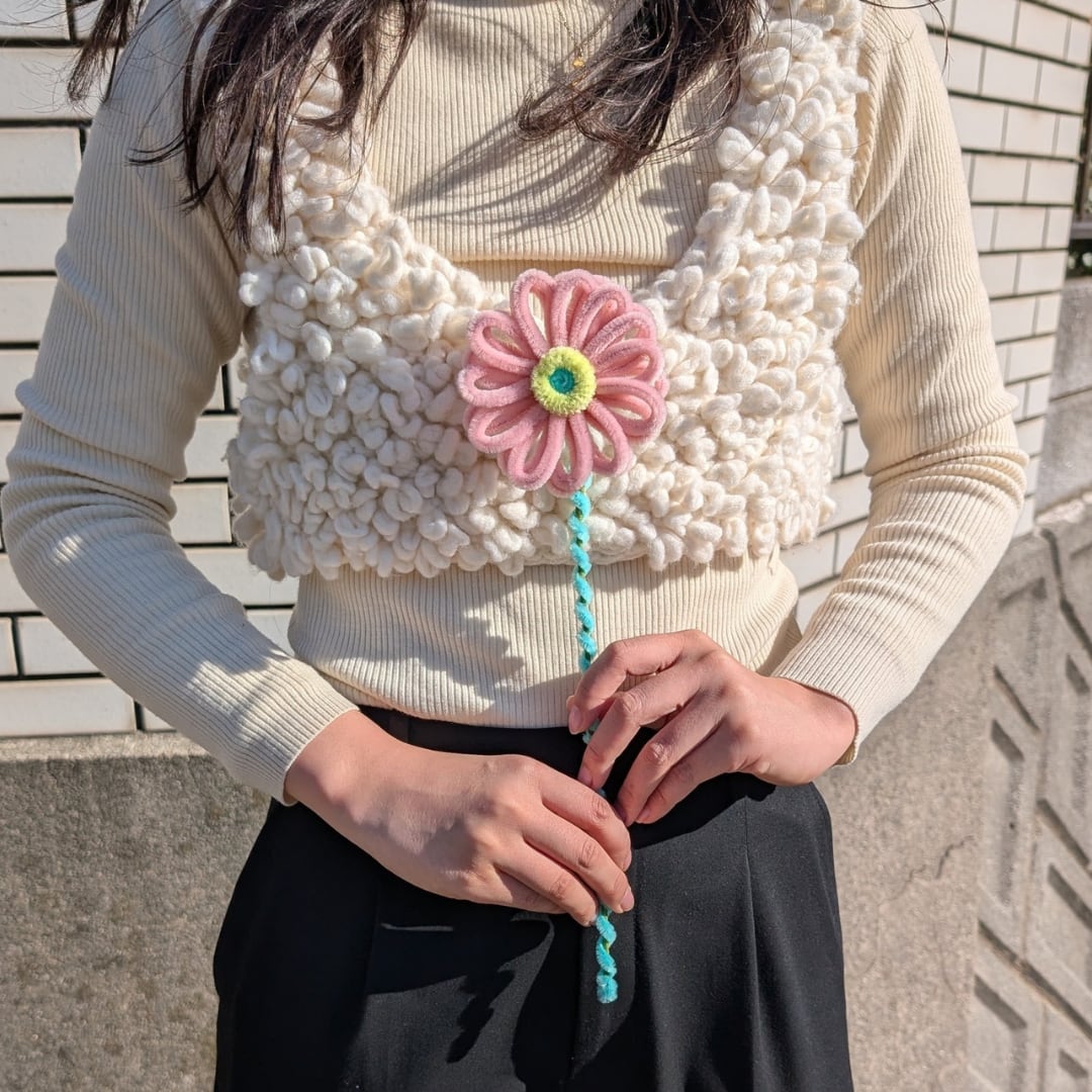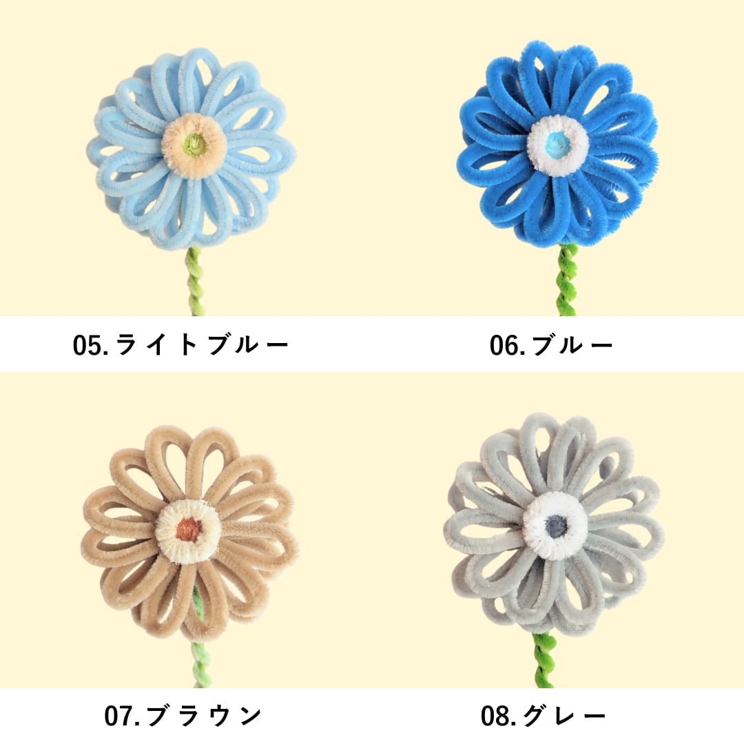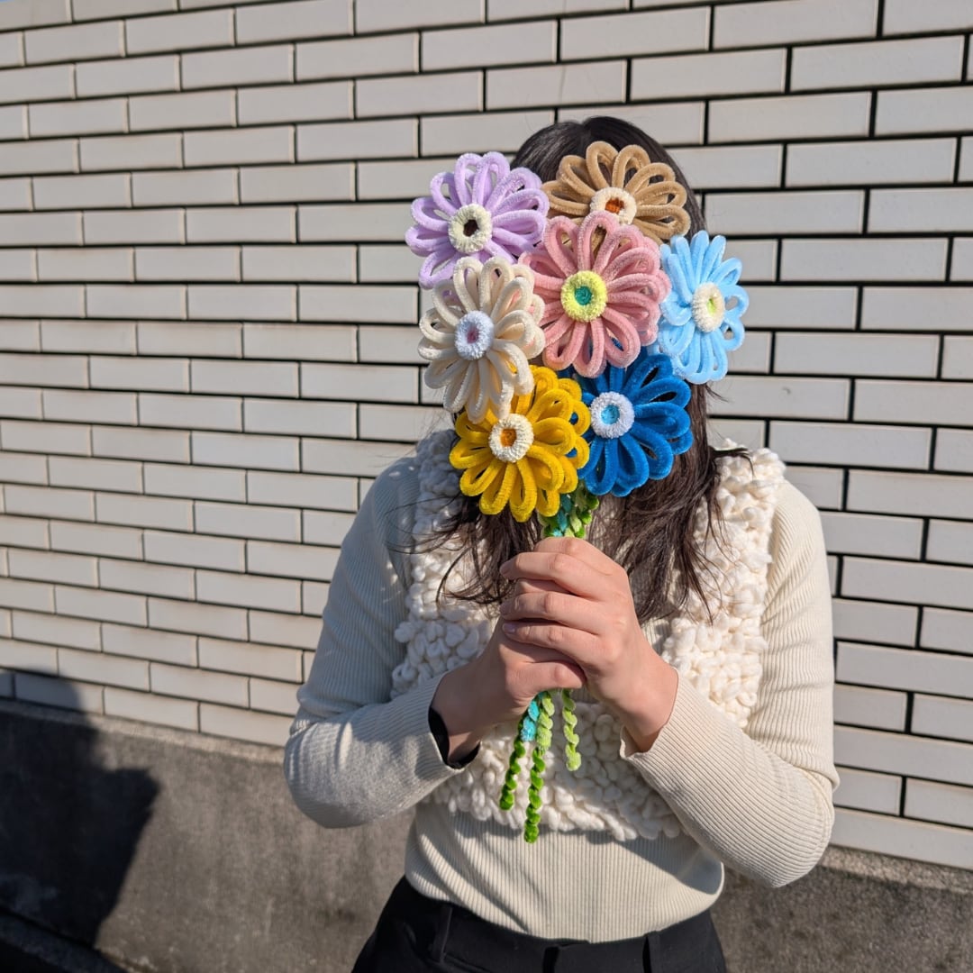 海外から取り寄せたこだわりカラーのモールで1つ1つ丁寧に手作りした1点ものです。