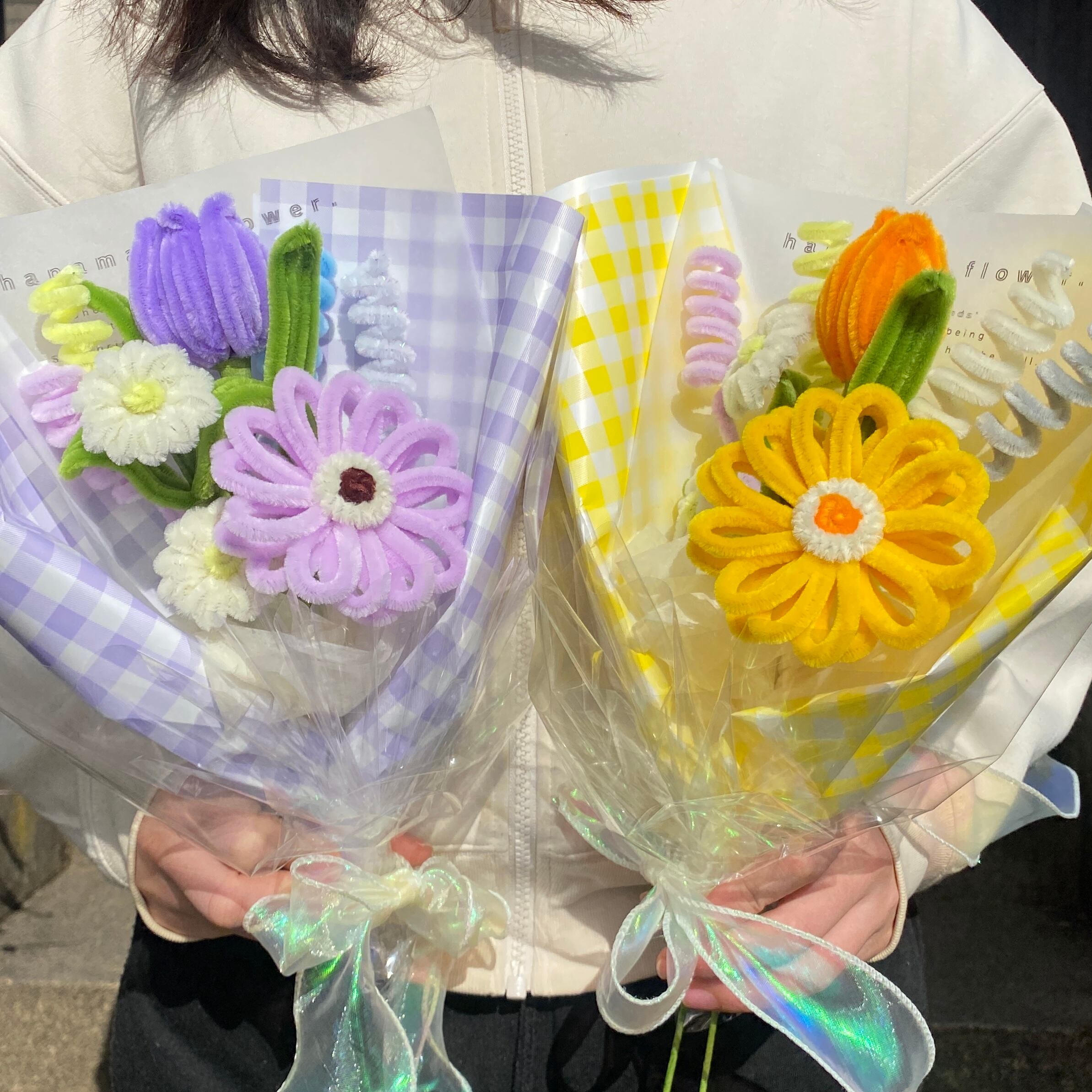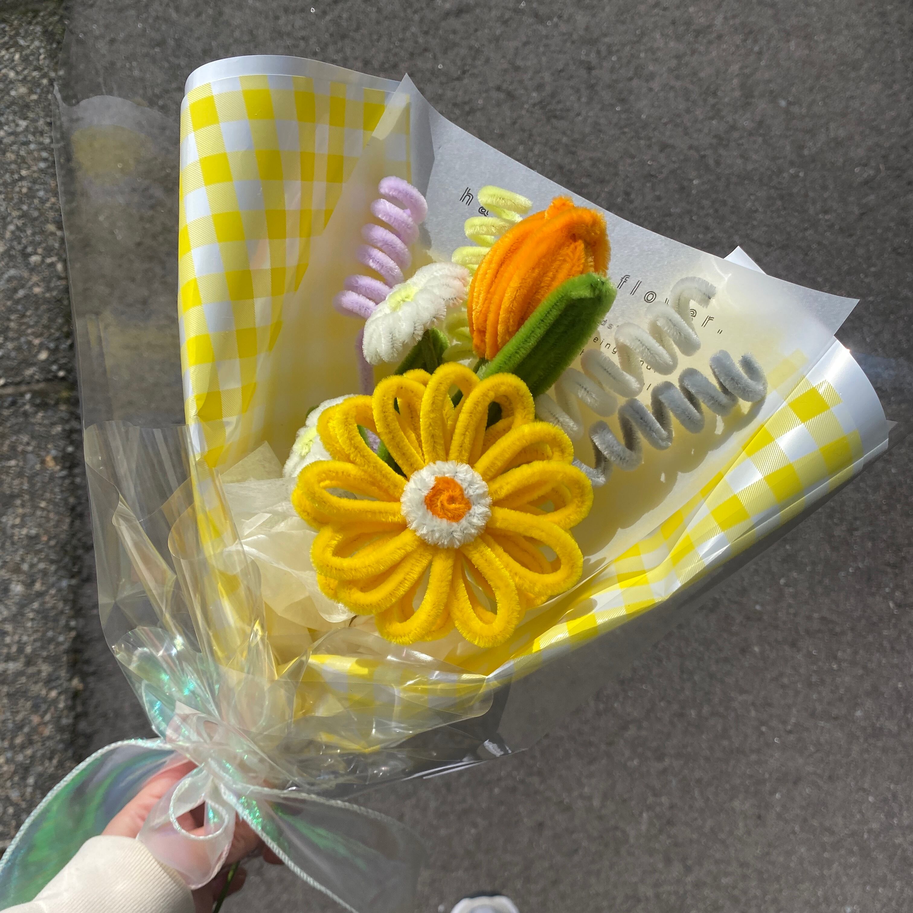 海外から取り寄せたこだわりカラーのモールで1つ1つ丁寧に手作りしている1点ものです。