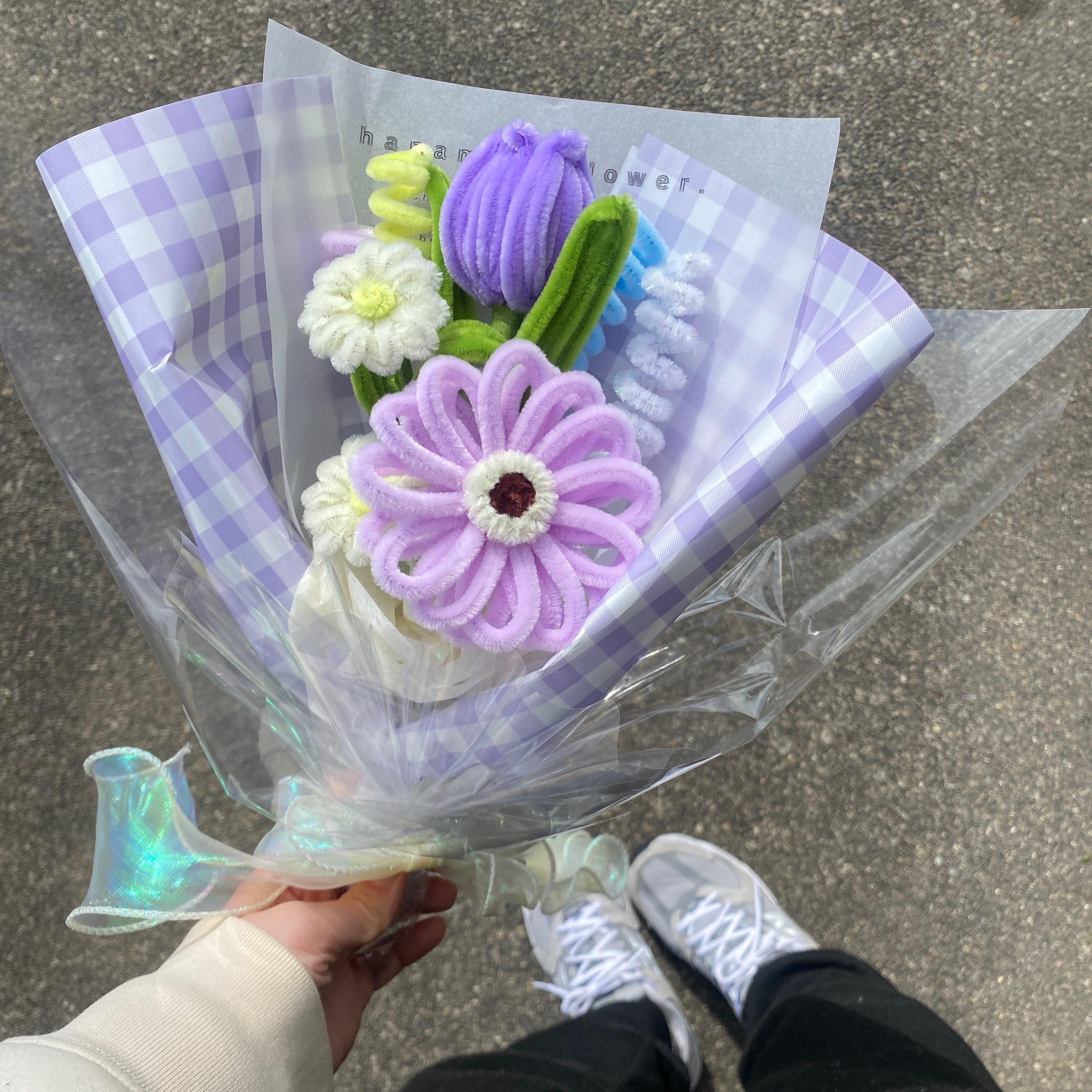 特別な日の贈り物にぴったりなfuwafuwa flowerのギンガムチェックブーケ。